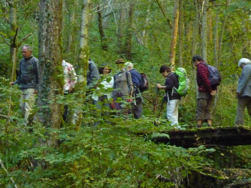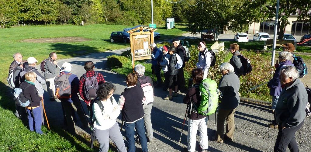 Une vingtaine de personnes étaient présentes à cette randonnée didactique, chemin du jour, « Goutte et Feuille ». Mr Ville, le maire, et trois animateurs des Amis du Parc, dont Jean- Claude le guide affiné et raffiné, « l’enfant du Pays », nous accueillaient chaleureusement. Ils déclaraient leur joie de cette rencontre amicale et son déroulement.